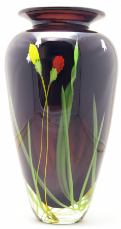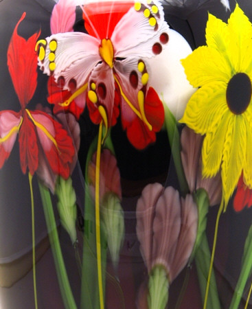 MW TROPICAL FLOWER BUTTERFLY BLACK VASE